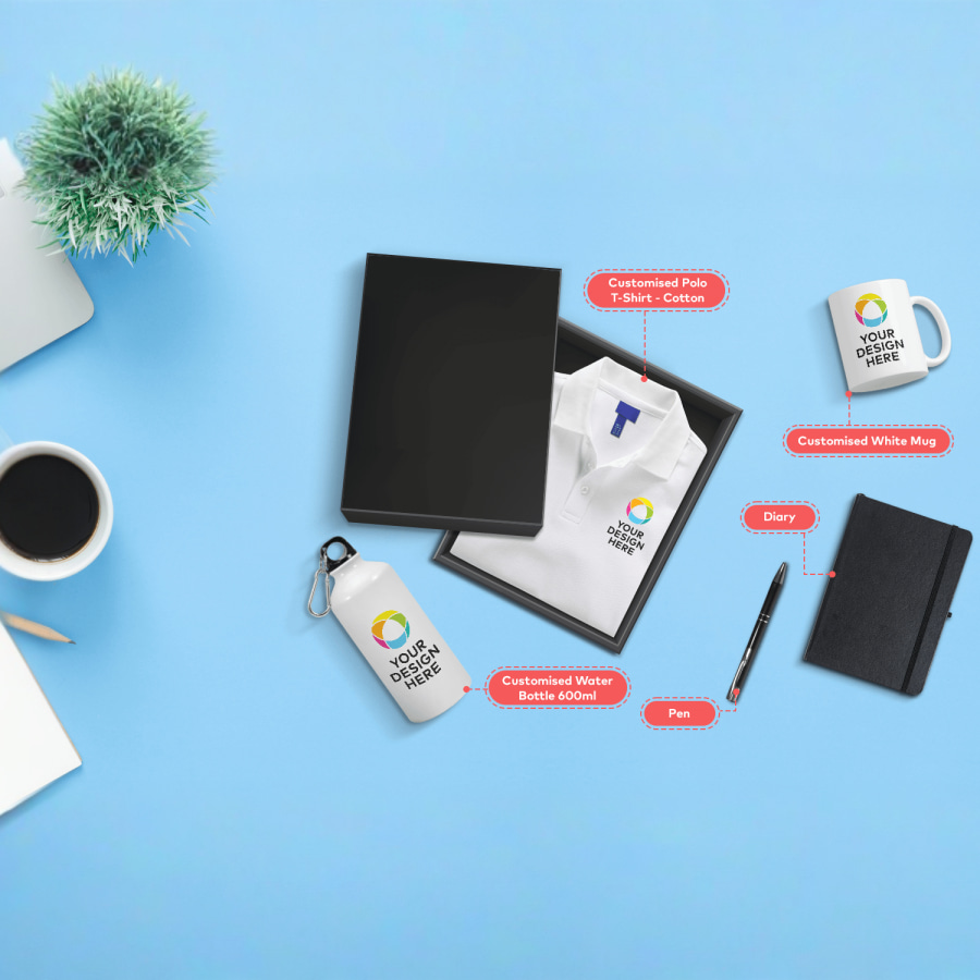 (Includes Polo T-Shirt, Water Bottle, Coffee Mug, Diary, Pen)